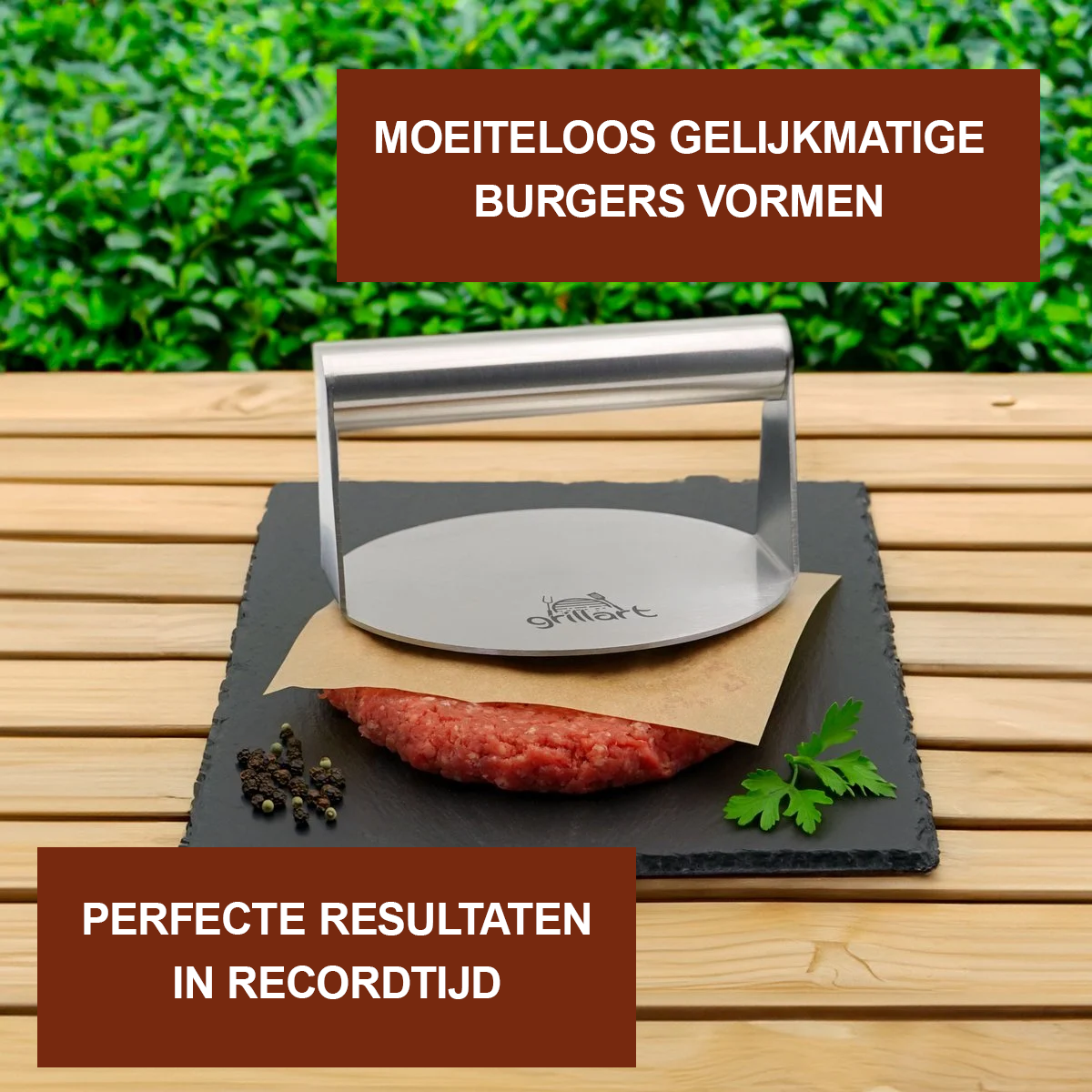 INCLUSIEF 30 BURGERPAPIEREN: De set bevat 30 hoogwaardige burgerpapieren (14×14 cm), die het bereiden van smashburgers nog eenvoudiger maken. Geen plakken, geen scheuren – gewoon perfect gevormde burgers!